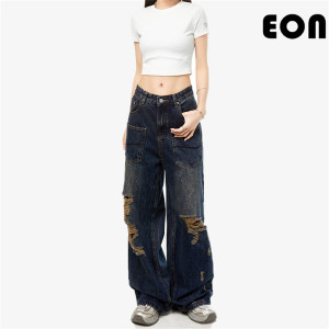 - Product Name: Women Vintage Ripped Wide-leg Jeans Bottoms Pants Trousers Outfits Casual Jeans